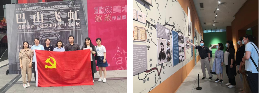 活動(dòng)簡(jiǎn)介:6月8日下午,集團(tuán)審法財(cái)務(wù)黨支部在集團(tuán)監(jiān)事會(huì)主席、工會(huì)主席陳靜和財(cái)務(wù)總監(jiān)馬明澤的帶領(lǐng)下,來(lái)到重慶美術(shù)館開(kāi)展“喜迎二十大,感受成渝鐵路建設(shè)發(fā)展”主題黨日活動(dòng)?;顒?dòng)成效:活動(dòng)中,一行人仔細(xì)參觀了“巴山飛虹——成渝鐵路主題美術(shù)作品與文獻(xiàn)展”,展覽共展出了“速度成渝鐵路”主題美術(shù)作品和文獻(xiàn)資料100余件,涵蓋連環(huán)畫(huà)、攝影、油畫(huà)、雕塑等多種形式,全面展示了七十年來(lái)“成渝鐵路”主題創(chuàng)作的歷史變遷。參觀結(jié)束后,大家紛紛表示,對(duì)歷史最好的致敬就是書(shū)寫(xiě)新的歷史,將立足崗位職責(zé),認(rèn)真做好各項(xiàng)本職工作,為推動(dòng)都市快線事業(yè)高質(zhì)量發(fā)展作出應(yīng)有貢獻(xiàn)。