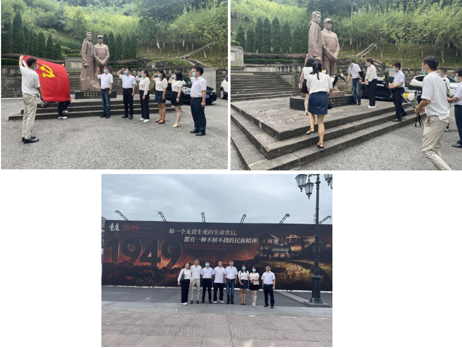 活動(dòng)簡(jiǎn)介:為推動(dòng)黨史學(xué)習(xí)教育常態(tài)化長(zhǎng)效化,引導(dǎo)全體黨員牢記黨的宗旨、珍惜黨員身份、永葆先進(jìn)本色,7月22日,規(guī)劃發(fā)展部黨支部組織開(kāi)展“追尋紅色記憶,傳承革命精神”主題黨日活動(dòng)。全體黨員前往紅巖文化景區(qū)歌樂(lè)山松林坡參觀學(xué)習(xí),以重溫入黨誓詞和獻(xiàn)花儀式表達(dá)對(duì)英雄們深切的懷念及崇高的敬意?;顒?dòng)還組織觀看了歷史舞臺(tái)劇《重慶·1949》。活動(dòng)成效:此次活動(dòng)讓黨員們?cè)趨⒂^學(xué)習(xí)的過(guò)程中深入了解了英雄烈士的革命事跡,通過(guò)豐富的歷史文物、詳實(shí)的文獻(xiàn)資料進(jìn)一步了解革命的艱苦歷程,追憶英雄們保家衛(wèi)國(guó)的豐功偉績(jī)。大家紛紛表示,將繼承革命先輩遺志、發(fā)揚(yáng)優(yōu)良傳統(tǒng),牢記初心使命、堅(jiān)定理想信念,永葆干事創(chuàng)業(yè)的激情與熱情,自強(qiáng)不息、奮斗不止,為集團(tuán)的高質(zhì)量發(fā)展貢獻(xiàn)一己之力。
