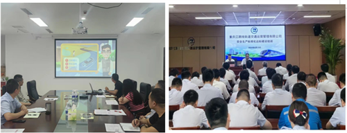 (一)開展安全教育培訓(xùn)活動。集團系統(tǒng)組織開展“安全生產(chǎn)大家談”“班前會”“以案普法”等活動156場次,參與3502人次;組織觀看“安全生產(chǎn)月”主題宣傳片、《安全生產(chǎn) 責(zé)任在肩》《危險降臨》警示教育片、“人人講安全、個個會應(yīng)急—暢通生命通道”宣傳片等139場次;邀請重慶社安消防培訓(xùn)教官開展消防知識培訓(xùn),組織職工學(xué)習(xí)《火場逃生必備常識》專題教育片,開展針對火災(zāi)、城市內(nèi)澇自救互救技能培訓(xùn);江跳線運營公司邀請安全專家以“安全生產(chǎn)標(biāo)準(zhǔn)化達標(biāo)建設(shè)”為主題,開展全員安全教育培訓(xùn)活動。
